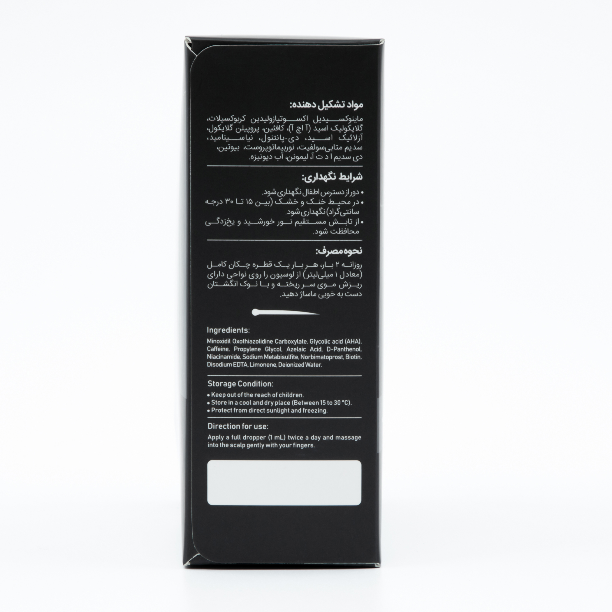 این محصول کمپلکس تخصصی حاوی چندین ماده موثر برای رشد مو از جمله ماینوکسیدیل 5 ٪ محلول در آب و نوربیماتوپروست می‌باشد که مهار کننده ریزش مو، تقویت کننده و افزایش دهنده سرعت رشد مو است، همچنین تحریک تیره تر شدن موها و جلوگیری از سفید شدن مو اثربخشی استفاده از این محصول می‌باشد .